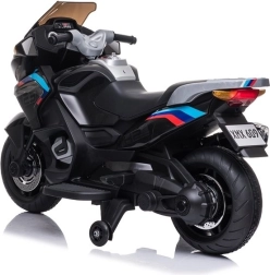 Die sportliche Ausführung des batteriebetriebenen Motorrads hat ein attraktives Design mit Verzierungen, die typisch für vollwertige Fahrzeuge sind. Es ist aus robustem ABS-Kunststoff mit modernen und originellen Elementen hergestellt, die jedes Kind ansprechen. Zusätzliche seitliche Räder helfen, das Gleichgewicht zu halten.