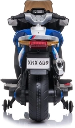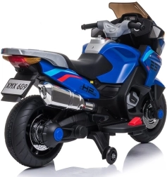 Sportliches Motorrad für Kinder zieht nicht nur durch seine einzigartige Farbgebung, sondern auch durch modernes Design und Verzierungen, die typisch für große Motorräder sind, alle Blicke auf sich. Robuster ABS-Kunststoff mit chromierten Details verleiht dem Motorradfahrer ein modernes und innovatives Aussehen.