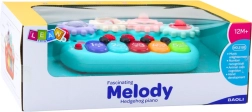 Im oberen Teil des Klaviers sind drehbare Zahnräder angebracht, die das Kind drehen kann, um seine Hand-Auge-Koordination und Feinmotorik zu üben. Dank der kompakten Größe ist das Spielzeug ideal sowohl für das Spielen zu Hause als auch für unterwegs. Es ist aus sicheren Materialien gefertigt und hat angenehme Pastellfarben.