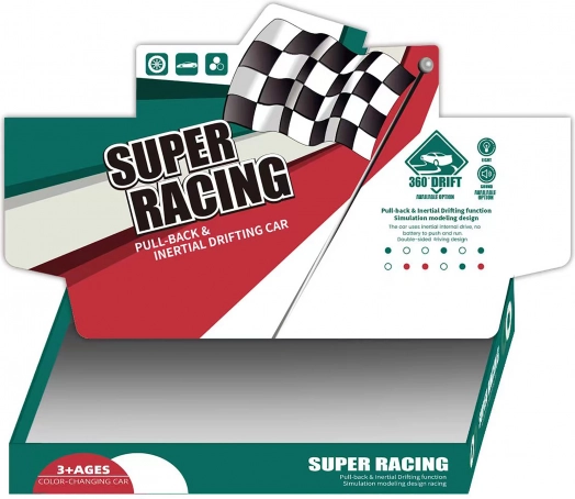 Rennwagen mit Schwungrad mit einer Länge von 16,5 cm bietet Spaß für alle Rennwagen-Enthusiasten. Erhältlich in vier dynamischen Farben.