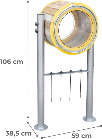 - Zusammenspiel der Kinder: an einer Trommel können 2 Kinder gleichzeitig von gegenüberliegenden Seiten spielen.