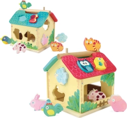 Dieses farbenfrohe Steckhaus fördert zentrale Fähigkeiten: Kinder trainieren die Hand-Auge-Koordination, logisches Denken und Geduld. Das Set enthält 1 Häuschen und 10 Holztierchen – eine ideale Kombination für sinnvolles und freudiges Spielen.