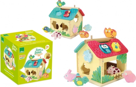 Der hölzerne VILAC-Bauernhof bietet abwechslungsreichen Steckspaß: Die Tiere werden durch formgenaue Öffnungen in den Wänden und im Dach des Häuschens gesteckt. Dank des praktischen Tragegriffs ist das Spielzeug leicht zu transportieren und eignet sich perfekt für zuhause und unterwegs. Die robuste Verarbeitung und glatten Kanten gewährleisten Sicherheit und eine lange Lebensdauer.