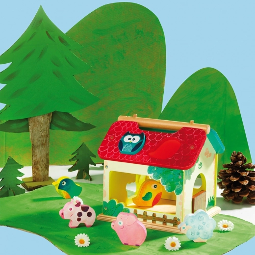 Zehn niedliche Holztierchen und passgenaue Aussparungen fördern das Erkennen von Formen und Farben, erweitern den Wortschatz und vermitteln grundlegende Prinzipien des Sortierens.