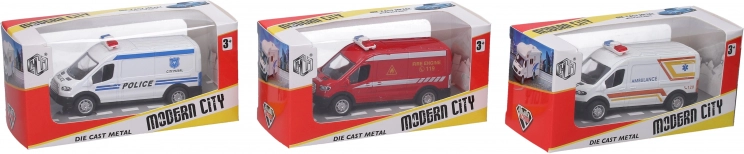 Erleben Sie Spaß und Geschwindigkeit mit kleinen Metall-Rettungsfahrzeugen, die drei verschiedene Varianten bieten - Polizei, Feuerwehr und Krankenwagen - für das maximale Spielerlebnis.
