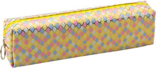 Stylisches und praktisches Schulmäppchen mit einem pastellfarbenen Schuppenmuster und einem gelben Reißverschluss ist das ideale Accessoire für jeden Schüler. Inspiriert von einem Meerjungfrauenmotiv bietet es dank seiner rosa, blauen und goldenen Farbtöne einen harmonischen, märchenhaften Effekt.