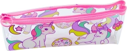 Transparenter Mäppchen mit bunten Einhörnern ist ein niedliches und praktisches Accessoire für jeden Schüler. Mit seinem märchenhaften Design und den Pastellfarben zieht es die Aufmerksamkeit auf sich und passt hervorragend zu den schulischen Bedürfnissen von Kindern.