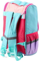 Der Rucksack hat ein großes Hauptfach, das ausreichend Platz für Bücher, Hefte und andere Schulmaterialien bietet. An der Vorderseite befindet sich eine abnehmbare Tasche mit einem Vogel, die separat als Etui oder dekorativ verwendet werden kann. Am Reißverschluss ist zudem ein Anhänger mit einem niedlichen Kaninchen angebracht.