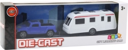 Set Autospielzeug mit Wohnwagen ist ideal für kleine Auto- und Abenteuerliebhaber. Mit einem Metallchassis und Plastikelementen bietet es Haltbarkeit und großartigen Spielspaß durch den abziehbaren Wohnwagen und die detaillierte realistische Ausarbeitung.