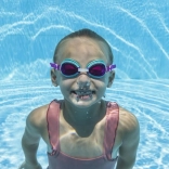 Die Brille ist in drei auffälligen Farbvarianten erhältlich, die jedes Kind begeistern und das Schwimmerlebnis verschönern.