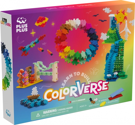 Plus-Plus Lerne zu bauen Regenbogen Super Set bringt Spaß und Kreativität mit 1000 Teilen. Dieses Set ist ideal für kreative 2D- und 3D-Modelle und fördert die Entwicklung kreativen Denkens und feinmotorischer Fähigkeiten von Kindern.