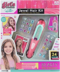 Set für kleine Friseurinnen, das 24 glitzernde Haaraccessoires und einen manuellen Spender enthält. Ideal für Kinder ab 5 Jahren.