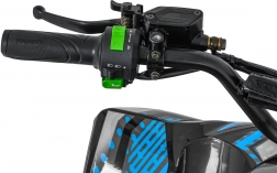 Für Sicherheit und Kontrolle sorgen hydraulische Scheibenbremsen an beiden Achsen sowie einstellbare hydraulische Stoßdämpfer vorne und hinten. Luftgefüllte Reifen mit grobem Profil in der Größe 16x8.0-7 bieten hervorragende Traktion und Stabilität im Gelände. Das übersichtliche Display mit Tacho, Kilometerzähler und Batteriestandsanzeige gibt Ihnen volle Kontrolle, während die Beleuchtung mit vorderen LED-Scheinwerfern und Bremslicht die Sichtbarkeit erhöht.