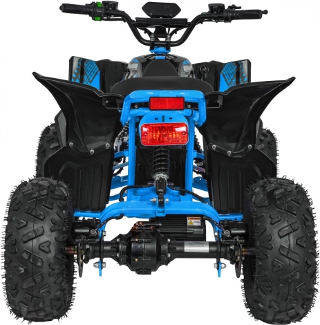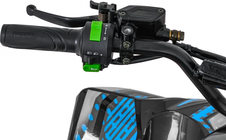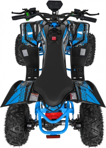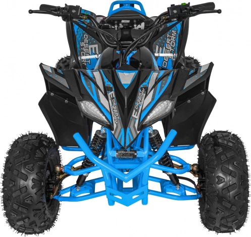 Das elektrische Quad DESERT STORM LIFT basiert auf einem stabilen, pulverbeschichteten Rahmen mit verstärkter hinterer Schwinge und hochwertigen, flexiblen Verkleidungsteilen. Der bürstenlose 800-W-Motor in Kombination mit dem 48 V 20 Ah Akku liefert gleichmäßigen Durchzug und energieeffizienten Betrieb. Die Höchstgeschwindigkeit beträgt bis zu 40 km/h, während das automatische Getriebe mit Rückwärtsgang (vorwärts/rückwärts) die Bedienung erleichtert.