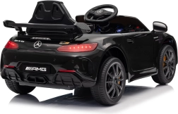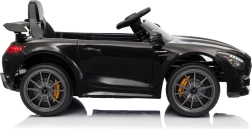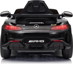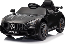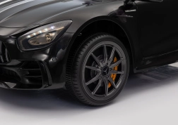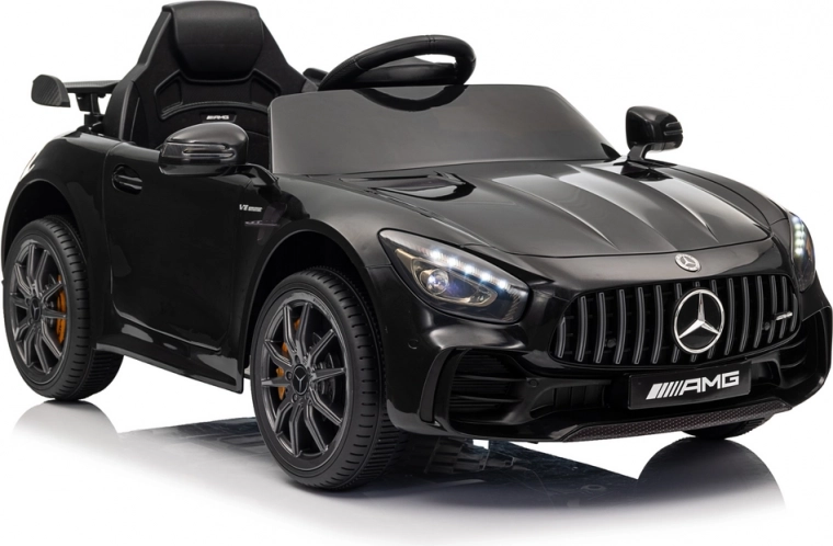 Stilvolles und starkes Kinderauto Mercedes GTR in schwarzer Farbe zieht alle Blicke auf sich mit seinem kraftvollen Design, verlängerter Motorhaube und vertikalen Gitterrippen. Dieses Auto ist mit zwei Motoren mit einer Leistung von jeweils 45W, einer Batterie von 12V4,5Ah und einem Automatikgetriebe mit drei Geschwindigkeitsstufen ausgestattet.