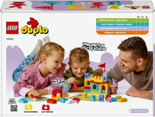 Dieses clevere 2-in-1 Spiel- und Bauset von LEGO DUPLO bringt Kindern spielerisch Wissen bei. Baut gemeinsam eine bunte Burg, dreht den Zeiger und bewegt die Tierfiguren über das Spielfeld. Je nach Farbe, auf der ihr landet, fügt ihr der Burg das passende Element hinzu – Teamgeist gewinnt, wenn alle Figuren die Burg erreichen!