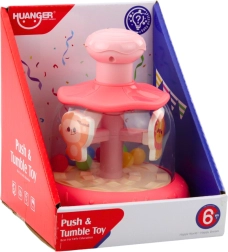Durch Drücken des rosa Knopfes oben dreht sich das Karussell und die Tiere beginnen sich um ihre eigene Achse zu drehen, wodurch ein dynamisches und farbenfrohes Karussell entsteht. Dieses Spielzeug spricht das Sehvermögen, Gehör und die Bewegung des Kindes an und fördert so die Auge-Hand-Koordination und das Verständnis von Kausalität.