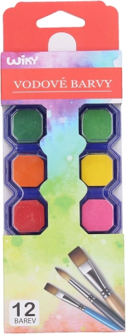 Entdecken Sie kreative Möglichkeiten mit unserem Set von Wasserfarben. Das Set enthält 12 Farben und einen praktischen Pinsel für einfaches Malen.