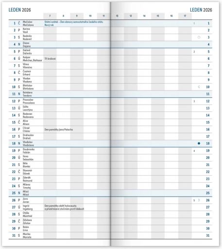 - Tschechisches Kalendarium mit Namen, Feiertagen und Gedenktagen.