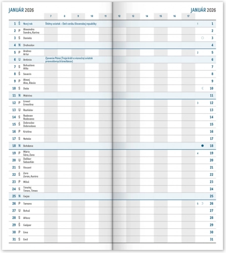 Eleganter taschenkalender in weinroter Farbe, ideal für die tägliche Planung mit monatlicher Übersicht, der in jede Tasche passt. Enthält slowakisches Kalendarium mit Namen, Feiertagen und Gedenktagen sowie eine Übersicht für die Jahre 2026 und 2027.
