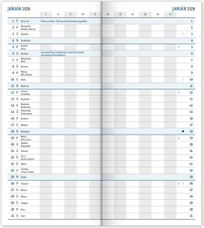 Praktischer und schlanker schwarzer Kalender mit Monatsübersicht, der leicht in jede Tasche passt. Enthält ein slowakisches Kalendarium und ist ideal für schnelles Planen.