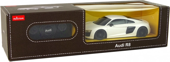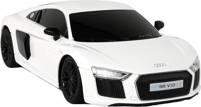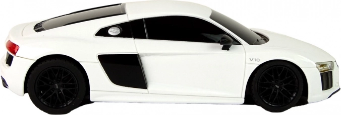 Das Audi R8 Automodell kommt mit einer stilvollen weißen Lackierung, die dem Auto ein außergewöhnliches und exklusives Aussehen verleiht. Verdunkelte Fenster bringen Geheimnis und Authentizität zum Fahrzeug.