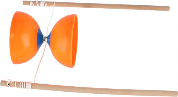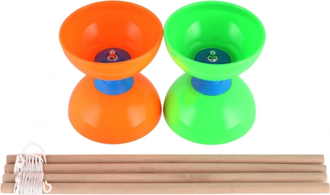 Stabile Kunststoffschalen widerstehen Stößen, Holzstäbe bieten einen sicheren Griff und ein natürliches Gefühl bei der Diabolo-Kontrolle.