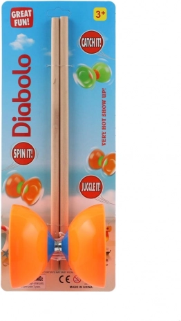 Das große Diabolo mit robusten Kunststoffschalen und Holzstäben bringt viel Spaß und fördert zugleich die Motorik. Dank der breiten Schalen und der stabilen Achse läuft das Diabolo sehr ruhig, hält die Geschwindigkeit gut und verzeiht Fehler – ideal zum Lernen und für die Weiterentwicklung von Tricks.