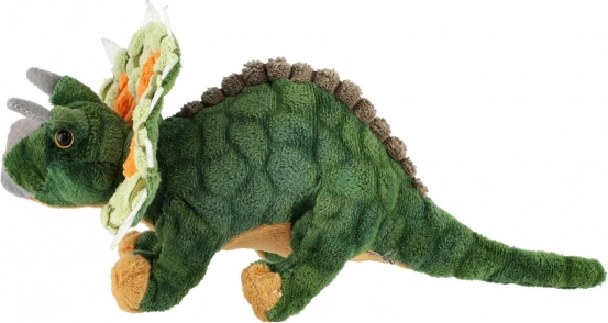 Dieser Plüsch-Triceratops in Grüntönen mit sanften Hörnern und Nackenschild verzaubert jedes Kind. Dank weicher Füllung und angenehmer Oberfläche ist er wie geschaffen zum Kuscheln, während kontrastreiche Details und strukturierte Materialien die Sinneswahrnehmung und die Fantasie fördern.