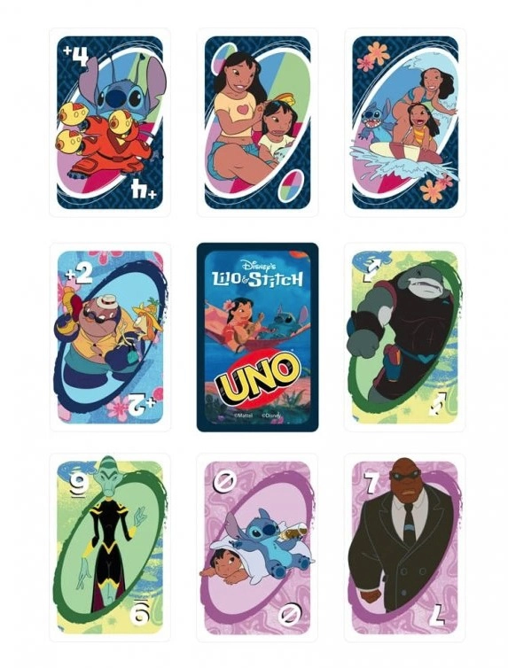 Die besondere Karte dieser Edition ist die Regel Ohana, die einen originellen Überraschungsmoment ins Spiel bringt – die Familie hält zusammen und jeder Spieler hat vier Karten auf der Hand. Farbenfrohe Illustrationen beliebter Figuren erfreuen Fans und sorgen auch für Kinder für Übersicht. Das Deck ist ideal für Reisen, Urlaub und gemütliche Abende zu Hause.