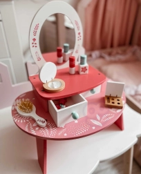 Entdecken Sie die Welt der Schönheit mit diesem Holztisch von Tooky Toy, ideal für jede kleine Prinzessin.