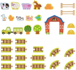 Genießen Sie kreativen Spaß mit diesem Holzbauerhof im Koffer von Tooky Toy. Es ist sorgfältig verarbeitet und bietet variable Spielmöglichkeiten dank der enthaltenen Tierfiguren, die Sie auf den Anhänger stellen können. Das ganze Set lässt sich leicht im Koffer verstauen, was es ideal für unterwegs macht. Eine hervorragende Wahl zum Spielen zu Hause und bei Besuchen.