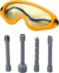 Das Gerät ist mit austauschbaren Endstücken ausgestattet, um verschiedene Bauaktivitäten wie Bohren, Schlagen oder Schrauben zu simulieren. Dank des beweglichen Endstücks und den Soundeffekten ist das Spiel noch realistischer. Das Spielzeug enthält auch eine Schutzbrille, die Kindern Sicherheitsgrundsätze lehrt.