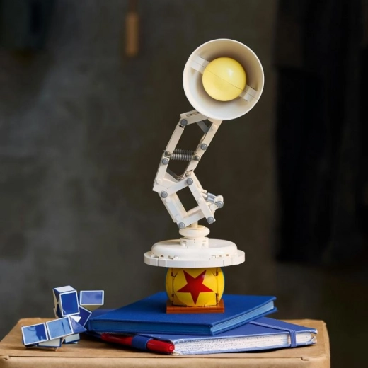 Bauen Sie die stilvolle Lampe LUXO JR., berühmt aus dem Vorspann der DISNEY PIXAR-Produktionen. Das Modell ist voll beweglich – das Neigen des Schirms, das Biegen der Arme und realistische „Federn“ ermöglichen ikonische Posen, einschließlich des Sprungs auf den Ball. Ebenfalls enthalten ist der Pixar-Ball, der sich öffnen lässt und thematische Überraschungen enthüllt, inspiriert von Filmen wie Oben (Up), Die Unglaublichen (The Incredibles), Ratatouille, Die Monster AG (Monsters, Inc.), Toy Story und Findet Nemo (Finding Nemo).