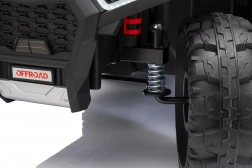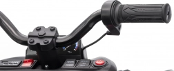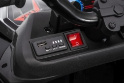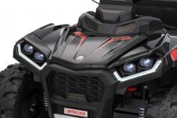Sicherheit wird durch Sicherheitsgurte und EVA-Räder für eine stabile und komfortable Fahrt gewährleistet. Das Quad verfügt außerdem über LED-Scheinwerfer und ein integriertes Audio-Panel, das einen MP3-Player, Bluetooth und einen USB-Anschluss enthält und das Hören beliebter Musik während der Fahrt ermöglicht.