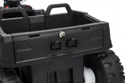 Weitere Funktionen beinhalten einen Sitz aus Kunstleder, einen geräumigen Kofferraum und eine Ladeanzeige, die sicherstellen, dass Kinder während der Fahrt alles unter Kontrolle und Komfort haben. Dieser ATV ist der ideale Begleiter für Kinderausflüge und die Entdeckung der Natur.