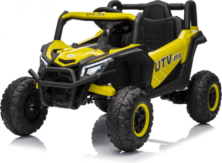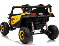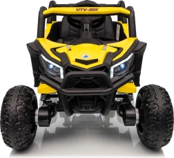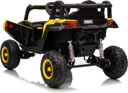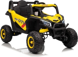 Dieses gelbe Buggy Madman UTV-MX ist ideal für Kinderfahrten dank des leistungsstarken Motors mit 4x35W und einer Batterie von 12V10Ah, die lange Fahrten ermöglicht. Die Steuerung ist einfach mit einer Fernbedienung auf 2,4 GHz Frequenz und drei Geschwindigkeitsstufen.