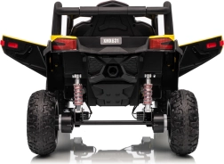 Sicherheit wird durch EVA-Schaumreifen mit den Maßen 24x10 cm und zuverlässige Vorder- und Hinterdämpfer gewährleistet, die Stabilität und Komfort beim Fahren bieten. Der Buggy ist mit LED-Scheinwerfern und einem Frontscheinwerfer mit Bedienknopf ausgestattet.