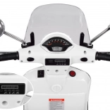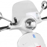 Frontschild, Spiegel, Scheinwerfer und Topcase sorgen für ein authentisches Erlebnis wie auf einer echten Vespa.