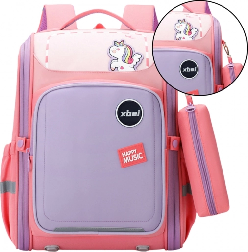Der pastellrosa Rucksack mit Einhorn ist für den täglichen Gebrauch konzipiert und bietet moderne Funktionen in Kombination mit einer angenehmen Ästhetik. Der Rucksack zeichnet sich durch sanfte Farben, dekorative Aufnäher und ein Einhornmotiv aus, was ihn zu einem beliebten Begleiter für Schultage macht. Die rosa-lila Farbkombination und die abgerundete Form mit sanften Details verleihen dem Ganzen Leichtigkeit und einen einzigartigen Charakter.