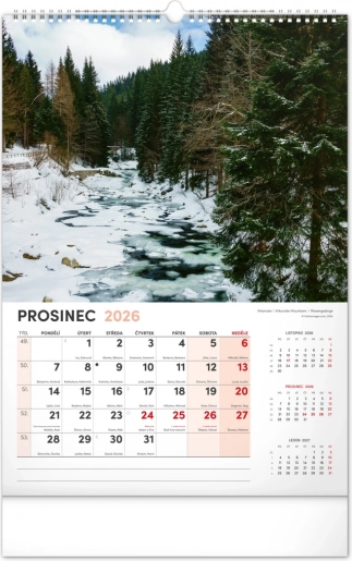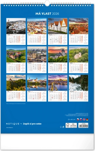 Bringen Sie ein Stück tschechischen Zauber in Ihr Zuhause mit dem Wandkalender Mein Land 2026. Dieser Kalender bietet atemberaubende Fotos: