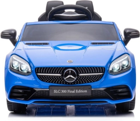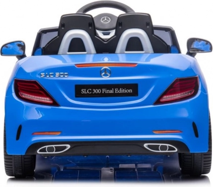 Batteriebetriebenes Auto Mercedes SLC 300 in blauer Farbe, ideales Spielzeug für Kinder mit detailliertem Design und Audiosystem.
