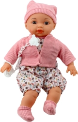 Kinderdoll im niedlichen Set inklusive weich rosa Pullover, Mütze mit Ohren und gemusterte Hosen. Die Kleidung ist leicht abnehmbar, was es ermöglicht, das Spiel nach Ihren Vorstellungen anzupassen. Durch das realistische Aussehen, einschließlich offener Mund und offener Augen, erinnert es wirklich an ein echtes Baby, was Kinder in der Entwicklung von Pflege und Verantwortung unterstützt.