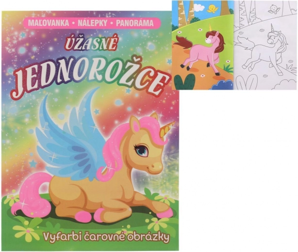 Malbücher und Aufkleber Panorama Erstaunliche Einhörner