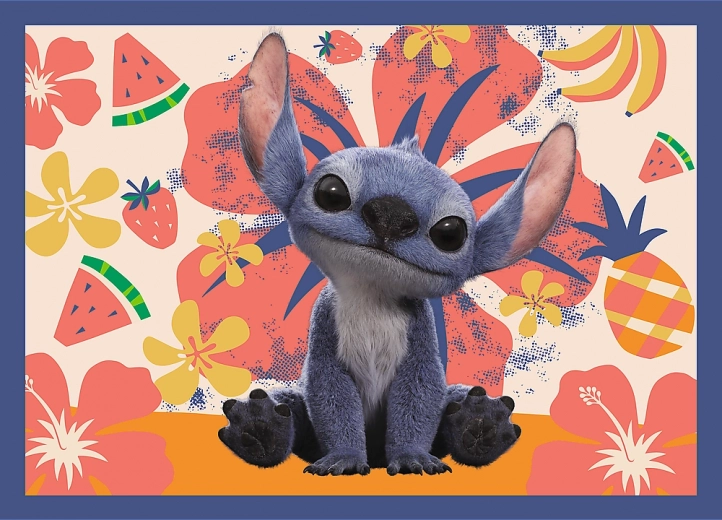 4-in-1 Kinderpuzzle Disney Stitch von Trefl. Vier separate Bilder 285×205 mm, umweltfreundliche Verarbeitung, ideal für Kinder ab 4 Jahren.