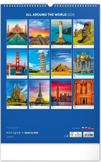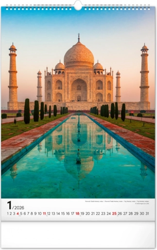 Entdecken Sie die Schönheiten der Welt mit unserem Wandkalender für das Jahr 2026, der Sie zu verschiedenen Zielen mit atemberaubenden Bauwerken in lebendigen Farben führt.