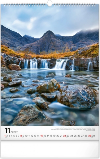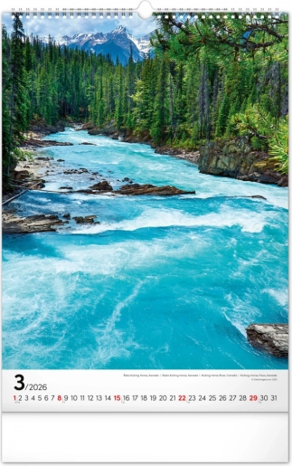 Der Wandkalender zeigt beruhigende und dramatische Ansichten von Wasser – ruhige Flüsse und Seen sowie die Dynamik tosende Wasserfälle. Jeden Monat bietet er eine neue Perspektive auf die Natur, die Ihrem Interieur Leben einhaucht.