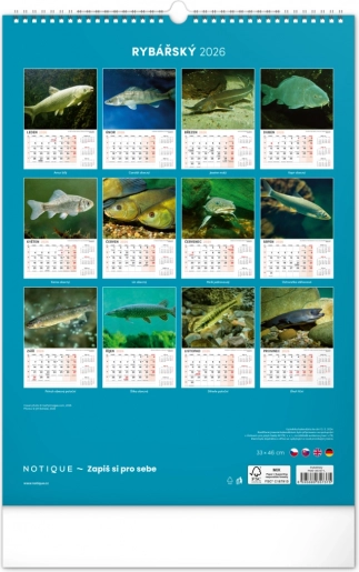 Bringen Sie die Schönheit der Wasserwelt mit unserem Angelkalender für das Jahr 2026 in Ihr Zuhause. Dieser Wandkalender bietet:
