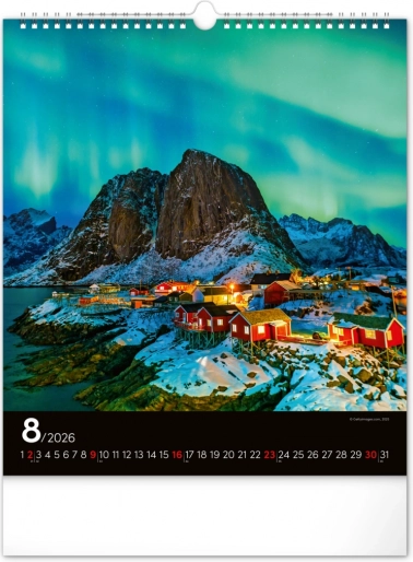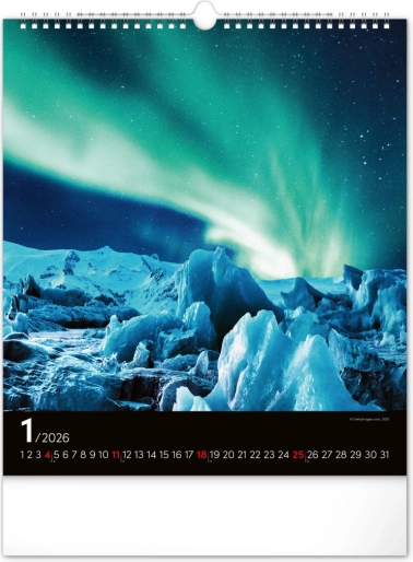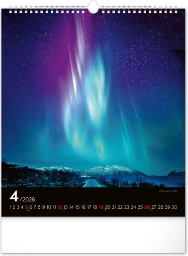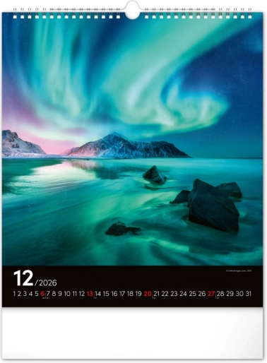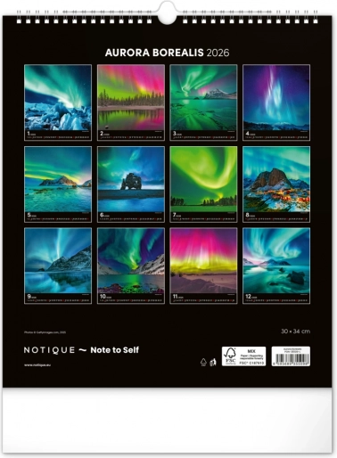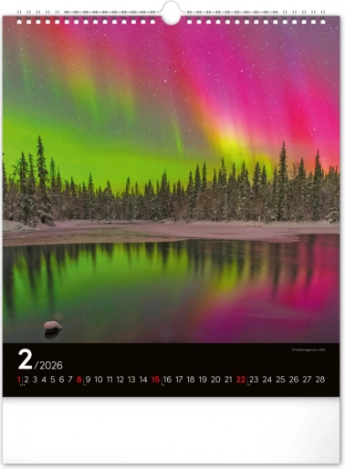 - Der Kalender enthält zwölf einzigartige Aufnahmen, die Sie in die Landschaften unter den Polarlichtern versetzen.