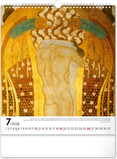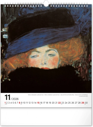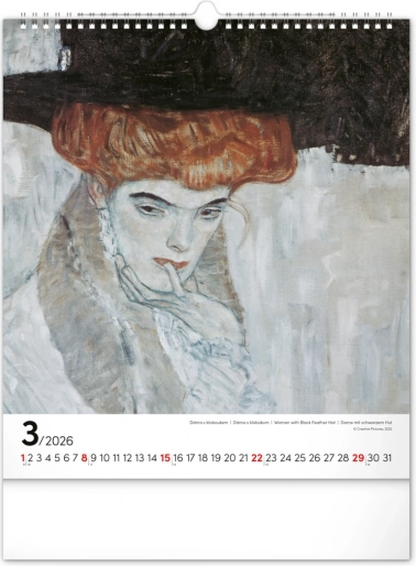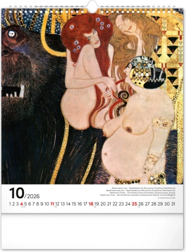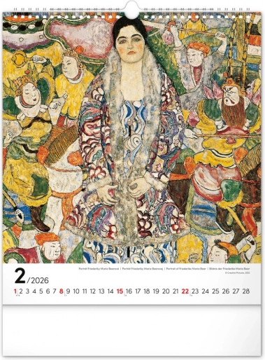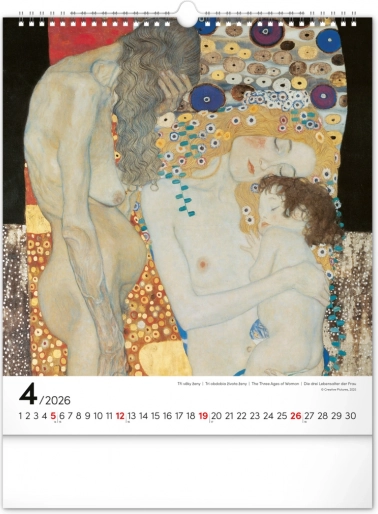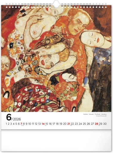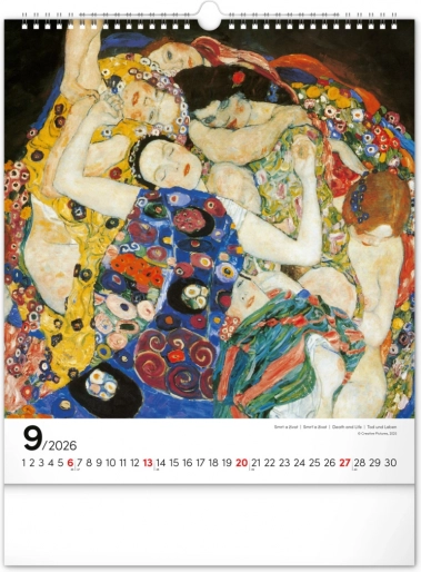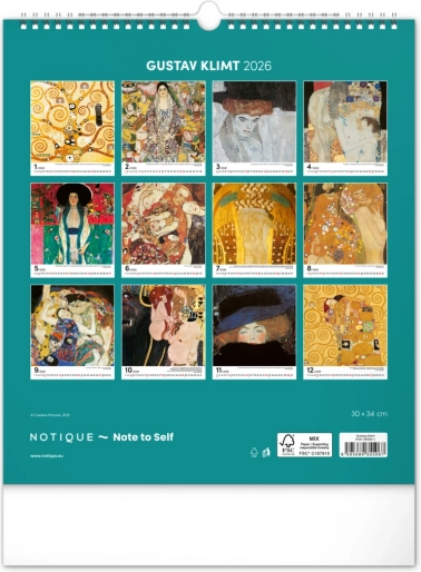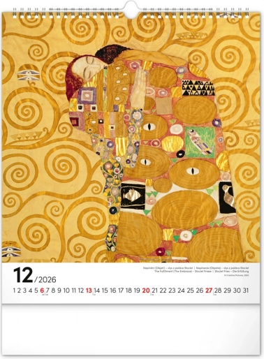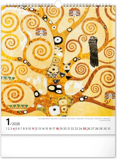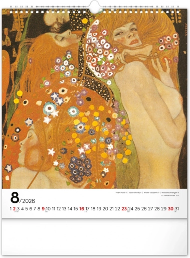 Eleganter Wandkalender mit Werken von Gustav Klimt für das Jahr 2026, der eine großartige Ergänzung für Ihr Interieur sein wird. Der Kalender enthält wunderschöne Reproduktionen der Gemälde, die auf hochwertigem Papier gedruckt sind und die Schönheit der Kunst dieses ikonischen Malers einfangen.
